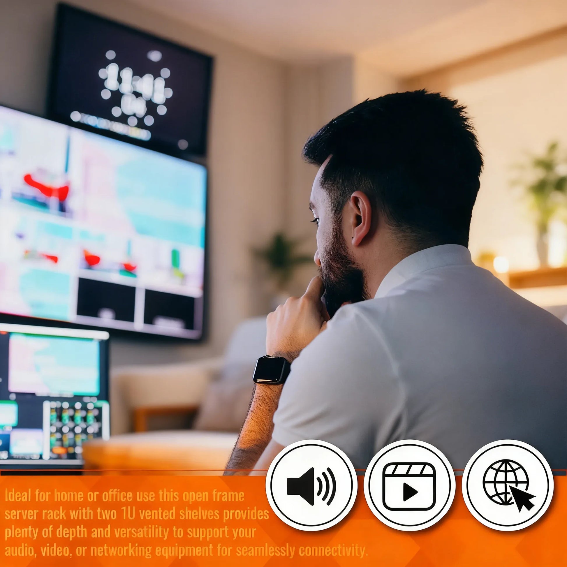 - Smart Design: Features 2x 1U vented shelves for optimal airflow (prevents overheating) and a stackable structure (max 2 racks) to scale storage as needed.